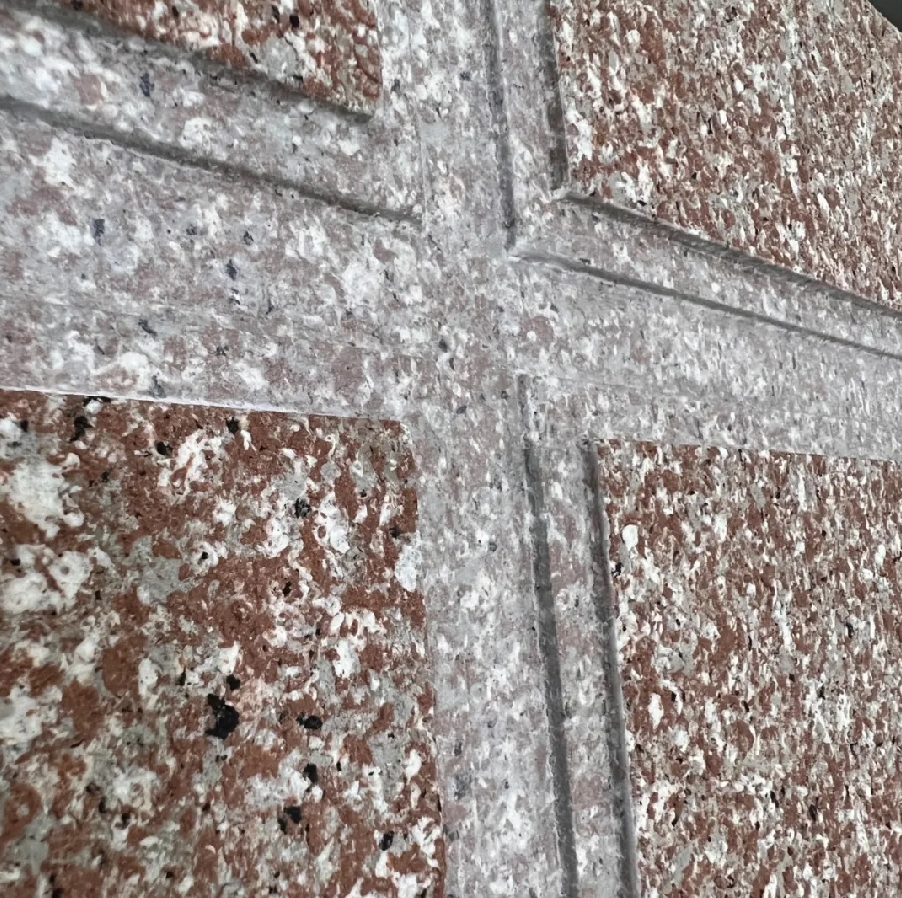 勾縫深度在1-3毫米,主要還原石材的立體感,讓仿石漆更加接近石材,比黑線工藝美觀大方,性價(jià)比高。需要在抗裂砂漿干透后進(jìn)行分縫處理,砂漿用量和施工步驟比平槽工藝多。價(jià)格相對平槽高些。