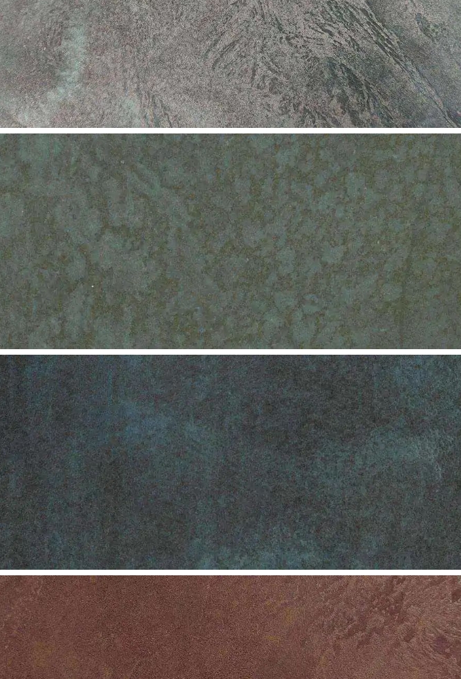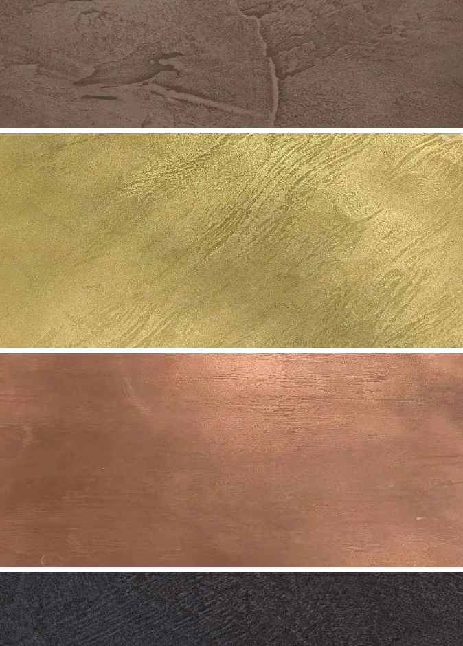 金屬微水泥根據(jù)所選擇的顏料和金屬粉末等成分的不同,可以組合出各種不同的效果并且還可以在做出的金屬效果上,進(jìn)一步處理形成氧化表面的視覺效果。